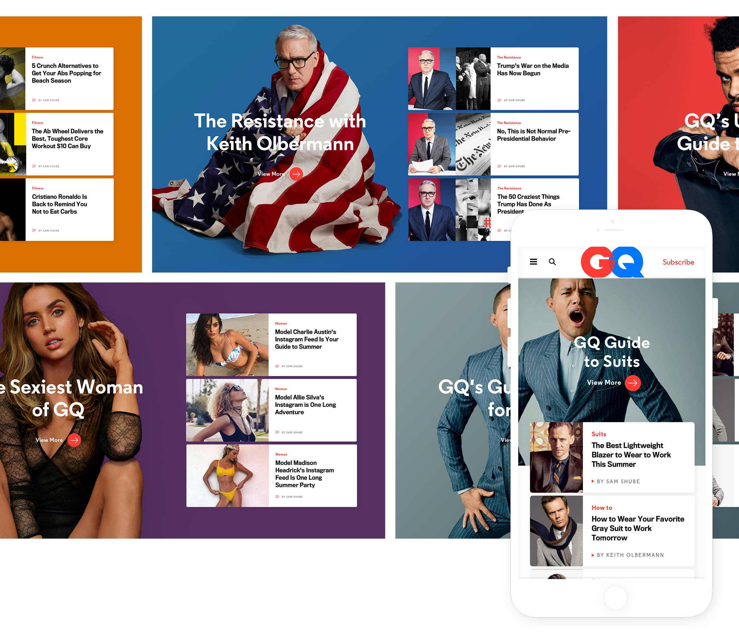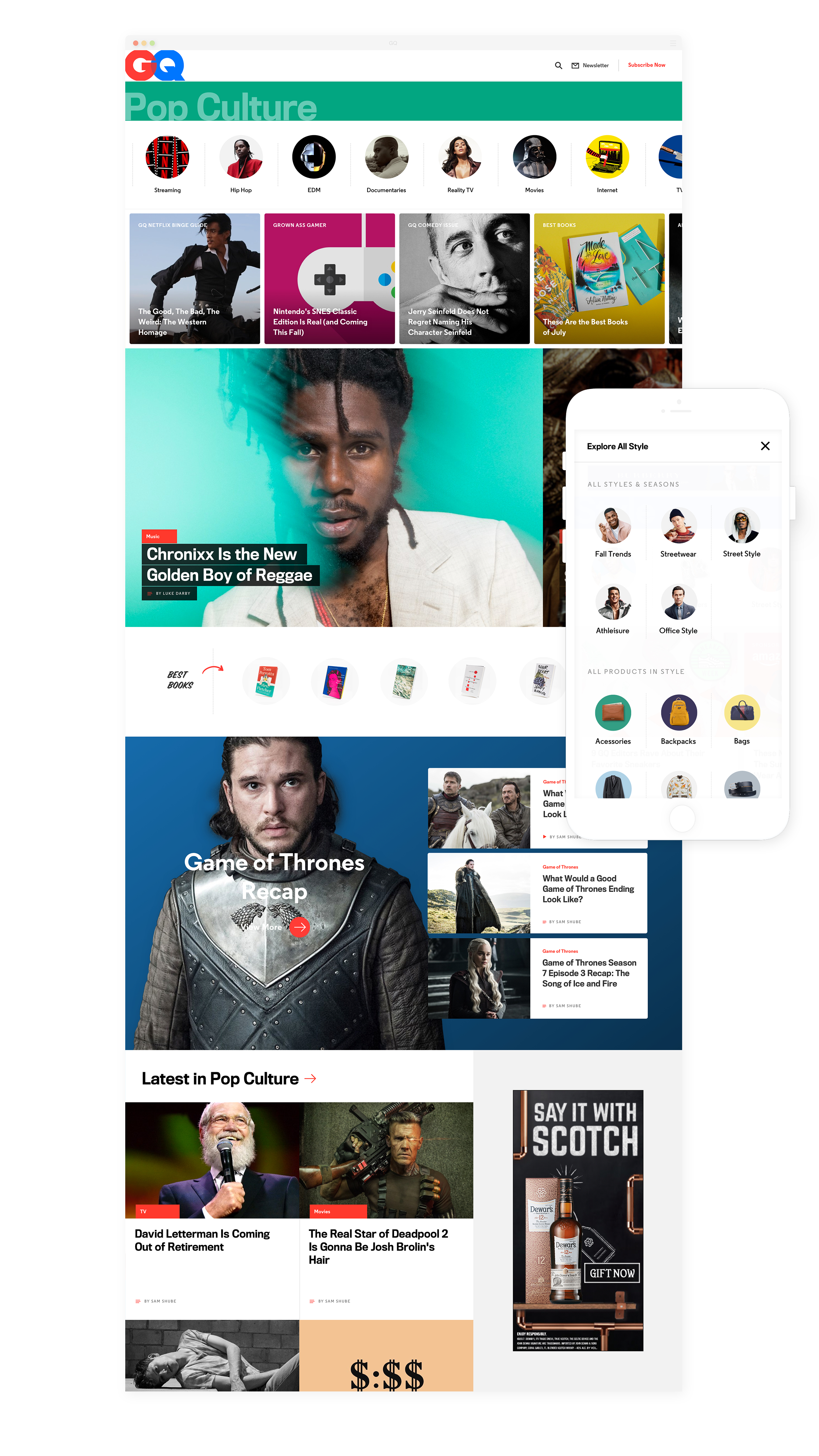 Limited Engagement: GQ relied on reverse chronological river templates to showcase all content.